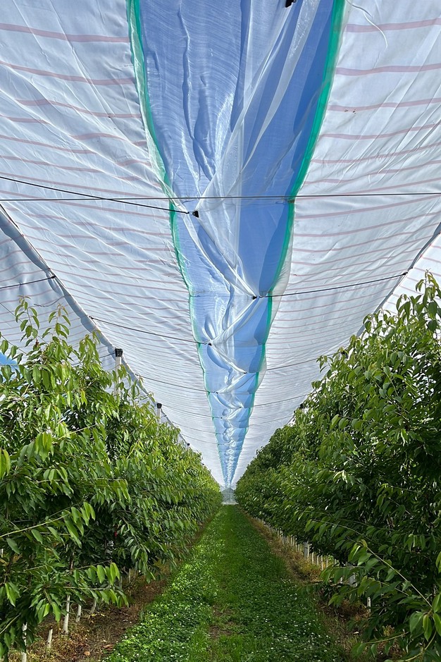 "Rain has been the true protagonist of the past few months but, thanks to the anti-rain net protecting our cherry orchard, we managed to salvage most of our production," reports Marco Foglio from Fratelli Foglio di Verzuolo (Cuneo), which installed Agrintech's Water-Insect Proof (WPI) a few years ago.