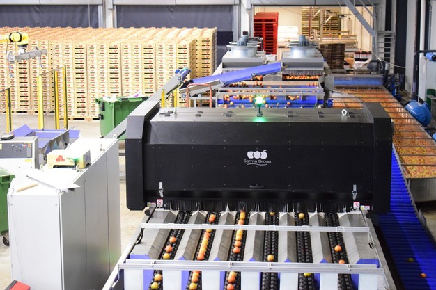 Besides grading, the Sorma Group has automated other parts of the tomato postharvest process, too, including transport, drying, and packaging into 6kg boxes. This automation minimizes the need for manual labor after picking and ensures consistent final product quality.