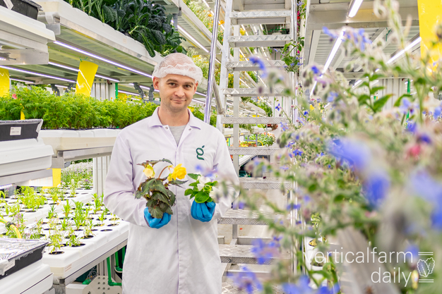 A rare edible flower grown inside the vertical farm