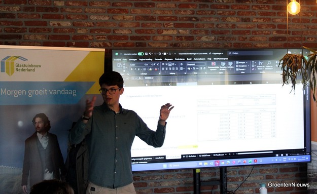 In the last half hour, host Peter van der Avoird himself joins in. He talks briefly about the thermal storage system the company uses. The growers then go into the greenhouse with Peter for a while. All that calculation work is fun, but in the greenhouse, that's where it happens.