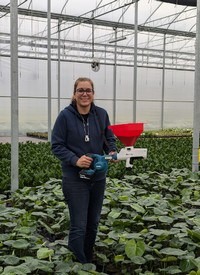 "The fine-grain carrier used in BioBee's products works seamlessly with BugFlow, allowing for uniform and rapid dispersal across large areas," says Sirma. With a reach of three meters forward and 50 centimeters to each side, the device is particularly suited for crops on benches, bedding plants, and other hard-to-access areas.