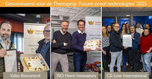 Together with Greenport Noord-Holland Noord, the Tuinbouw Ondernemersprijs will this year award another Theme Prize to an initiative that stands out in a special way in the field of Future-proof technologies Innovative technologies in the field of smart farming, energy, and water, and preferably deployed in an integrated way. Nominated are: