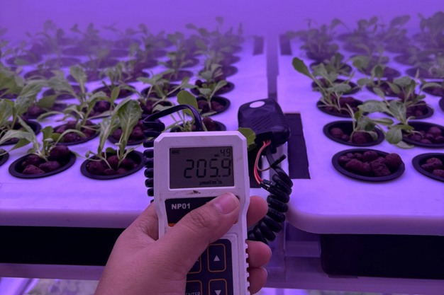 This vertical stacking enables Purple Farms to maximize their production area, turning 4,400 square feet into the equivalent of 13,000 to 14,000 square feet. This optimization leads to lower production costs and a more sustainable model. "The higher we go, the cheaper our production cost becomes," Brahmmjyot explains. "With these systems, we can compete directly with traditional farming, as our prices are at par, and we're still making a decent profit."