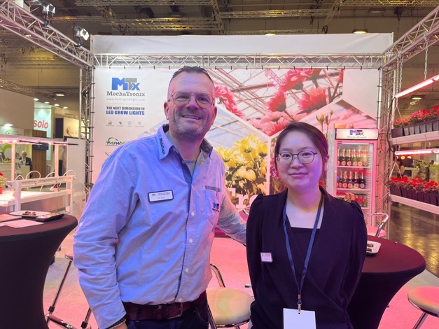 Jan Bier and Hua Li with Mechatronix. Yesterday, we published about Western North America's largest LED-lit greenhouse. Did you now it's equipped with Mechatronix lights?