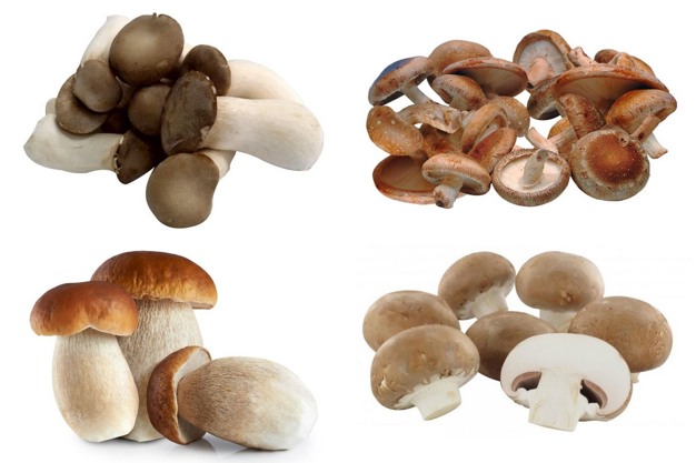 King oyster mushrooms and brown button mushrooms grow