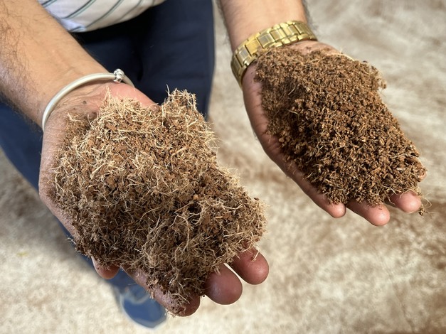 HydraFiber coir slabs consist of a mix of American-made and Indian-made materials. Part of the production takes place in India, where locally produced coir and US-imported wood fiber are combined. "We compress a container of wood fiber to fourteen times its original volume. That allows us to ship efficiently worldwide," says Ferdi. Import-wise, this provides some advantage in North America: the share of American raw materials' value can be subtracted from import tariffs.