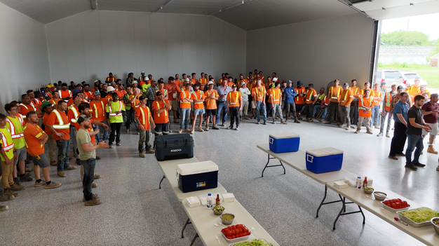 Hosted by Abe Wiebe (Universal Fabricating), the event brought together over 200 crew members involved in the ongoing development of the two facilities. Attendees included screen installers, welders, electricians, laborers, and construction personnel. The gathering served as a pause in operations to recognize workforce contributions across both builds. "A true reflection of the collaborative effort it takes to bring these greenhouse builds to life", the organizers said.