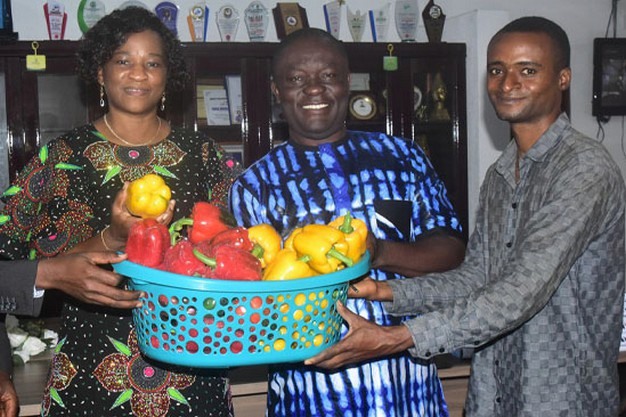 Presenting the pepper, Professor Ayoola Olalusi said, "We are here to present our new harvest to madam Vice Chancellor and to inform her that this product is in high demand in the market. With the promise to increase the house to six, I can boldly say that we are ready to meet further the market needs with the products which come in colours Green, Yellow and Red."