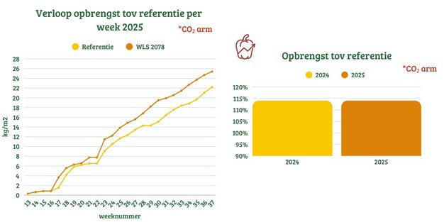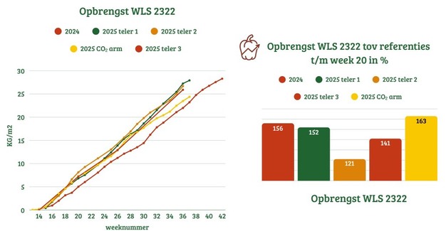 The variety WLS 2078 will be trialed with growers next season, and the initial data already looks strong. "This one is also showing a lot of early kilos," says Michiel. Like WLS 2322, it was selected under low-CO₂ conditions. Compared to the market reference, WLS 2078 delivered 19 percent more production in such conditions. "When CO₂ is available, the production gap narrows, but WLS 2078 still stands out," Michiel adds. "And growers save on CO₂ costs, which reduces their financial risks."