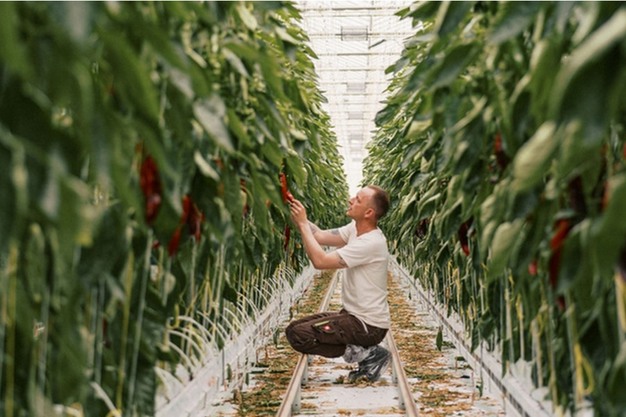 © ProJoulesMarcel Rohrbon in his greenhouse with sweet pointed peppers
