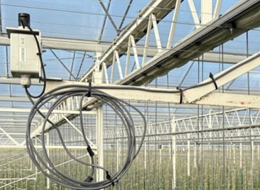 On the five-hectare pointed pepper greenhouse in Bad Blumau, a Kipp Solar meter has long been in place to measure sunlight outside the greenhouse. But when Frutura first started with pointed peppers, they weren't measuring light inside the greenhouse at all. That changed in the summer of 2023, when PAR meters were installed, both outside and inside the greenhouse. The reason? Blossom end rot was showing up in the crop, and the team suspected excess light might be to blame.