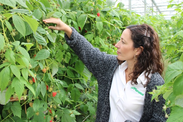 Still, the main topic of conversation throughout the day was the ease of picking. Elisa Pérez, breeding manager at Planasa, explained exactly what makes the difference. "We selected three specific traits that improve harvest efficiency. First, the structure of the plant: the berries are clearly visible and not hidden behind drooping branches or leaves. Second, the fruit size: the raspberries are relatively large, which makes picking faster and easier. And third, perhaps the most important factor, the attachment of the berry to the plant. Pink Rosita holds less tightly than other varieties, so the fruit comes off more smoothly during harvest."