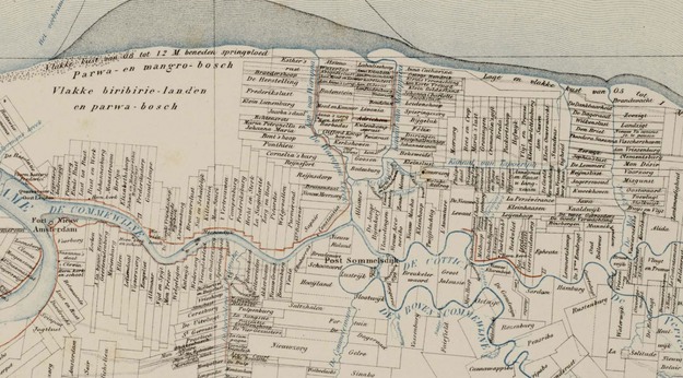 © Pieter Boekhout | HortiDaily.comOld map. All along the rivers used to be plantations. All but a few are overgrown and no longer in production. Suriname is one of the few countries in the world where water and fertile soil are not a problem.