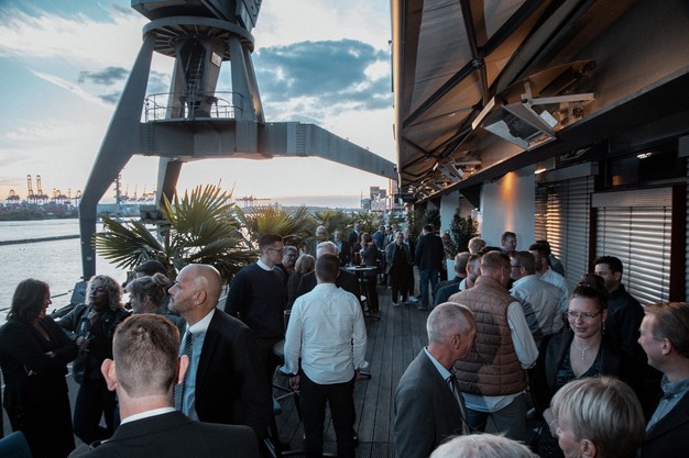 Invited guests at the anniversary celebration in Hamburg's fishing harbour