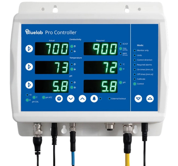 For monitors and controllers, the most popular among growers is the Guardian Monitor WiFi, which supervises pH, conductivity and temperature in real time both on the device screen and on a mobile device through Edenic. It provides continuous readings of the critical parameters in the irrigation tank and triggers alarms when values go outside the defined ranges. For growers looking for a higher level of automation, Bluelab offers the pH Controller WiFi, which automatically adjusts pH through a built in peristaltic pump, and especially the Pro Controller, the most advanced system in the range, capable of automating nutrient dosing and pH correction in tanks that feed hydroponic or recirculation systems.