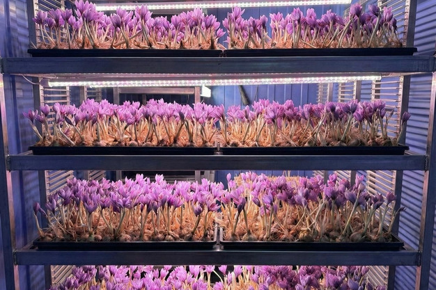 One of the most meaningful technical breakthroughs is the shortening of the full cycle. In nature saffron needs twelve months to complete its rhythm, with flowering in autumn and reproduction extending through spring. Inside the module that cycle is down to eight or nine months. "We cannot get two flowerings from the same corm because it needs its reproductive phase, but we can chain batches in different stages. That way in twenty four months you can get three cycles instead of two," he explains. "This even opens the door to a staggered production model. In theory you could have bulbs and flowers at different points of the year if you run several modules in parallel."