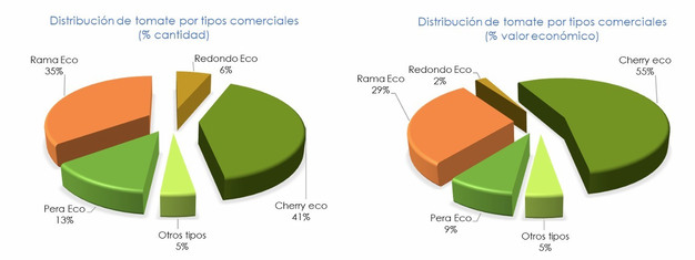 According to 2024/25 data provided by companies collaborating with the Prices and Markets Observatory, tomatoes lead organic production in Andalusia, accounting for 30% of the marketed organic output of the main greenhouse vegetables and 35% of total economic value. Within this segment, cherry tomatoes are by far the most significant category.