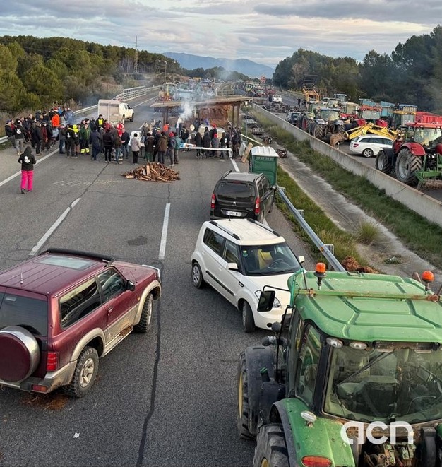 According to the Trànsit website, traffic came to a complete standstill, with almost 4 kilometers of traffic jams reported on the N-II between Bàscara and Vilademuls. Several Spanish media reported that more than 100 tractors were blocking both the AP-7 and the N-II at Pontos, in protest against the Mercosur agreement and planned cuts to the Common Agricultural Policy (CAP).