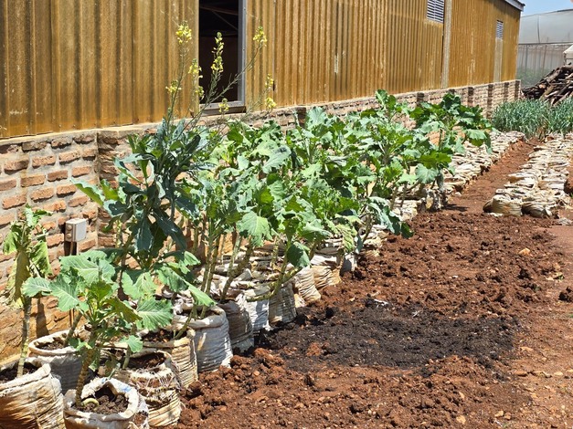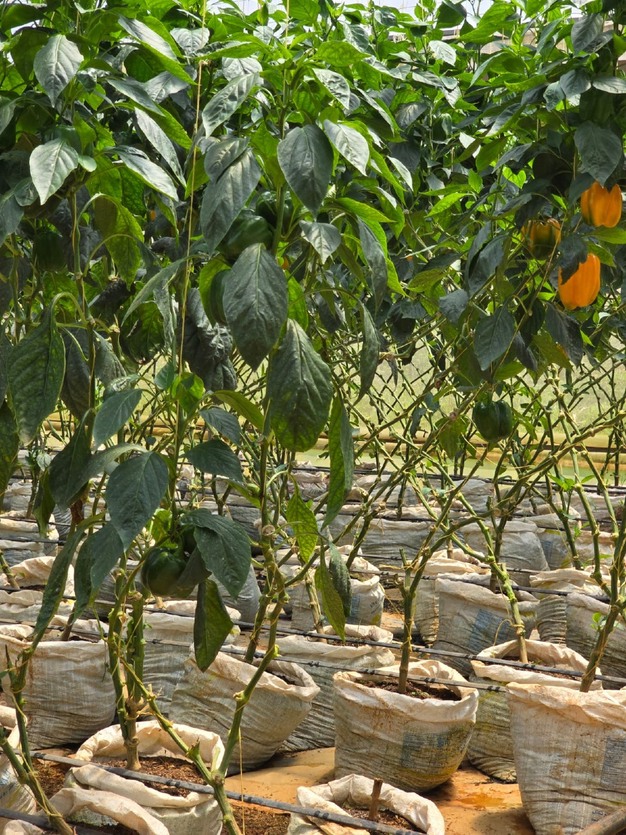 Sunripe Farms uses maize to heat and disinfect the soil prior to planting. Greenhouse crops are planted directly in the soil, with irrigation and fertilization delivered via drip systems. Fertilizers are applied both as granular material and through fertigation. The irrigation water has a pH range of 5.5 to 6.0.