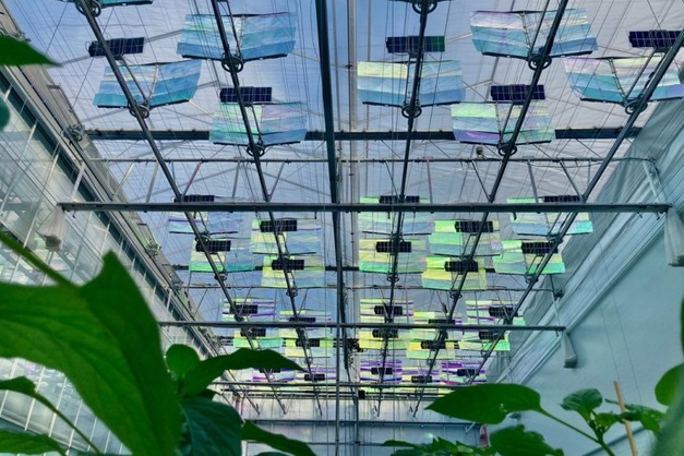 The trial was conducted at the Delphy Improvement Centre using spectrally filtering photovoltaic modules installed above a sweet pepper crop. The technology separates incoming light by frequency: photosynthetically active radiation (PAR) needed for crop growth is transmitted, while other radiation, including a large proportion of heat radiation, is reflected towards solar cells and converted into electricity.