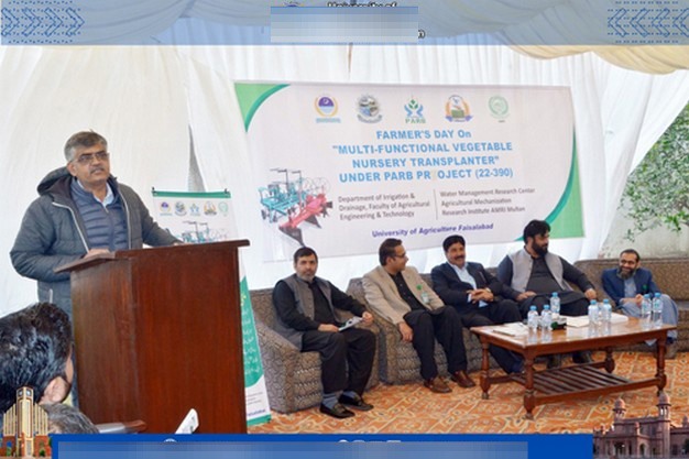 The University of Agriculture Faisalabad has developed, for the first time in the country, a Multi-Functional Vegetable Nursery Transplanter. This machine is expected to reduce production costs and increase productivity, supporting the goal of profitable agriculture. It has been developed under PARB Project (22-390), with Dr. Muhammad Zaman, Director of the Water Management Research Center, serving as Project Manager, and Engr. Shehzad Ahmed, Additional Director General of the Agricultural Mechanization Research Institute, serving as Team Leader.