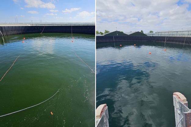 The site included two rainwater storage silos with capacities of 6,500 m³ and 2,500 m³. "Algae had been able to develop freely, causing structural problems. This was visible not only in contaminated water, but also in clogged filters, additional maintenance, the use of chemicals and extra labour, as well as uncertainty further down the water chain."