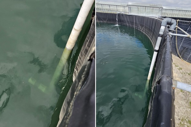 Such issues are familiar to many greenhouse growers, according to Ultramins, the supplier of USAF™ cavitating ultrasonic transmitters. A practical trial was conducted during the summer period in the 6,500 m³ rainwater silo at Schenkeveld. The system was installed at a time when algal pressure and microbiological load are typically at their highest, in order to assess performance under demanding conditions.