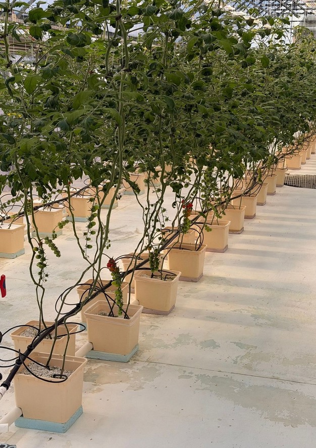 "Due to the lack of natural light in the winter months, cultivation takes place entirely above ground and is supported by LED lighting and drip irrigation. The containment pots are filled with a soil and rock mixture to provide the plants with proper nutrients."