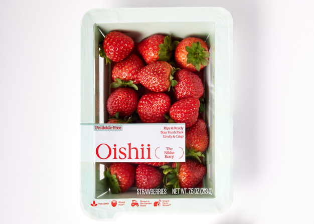 Oishii has introduced a new stay-fresh top-seal packaging format for its Nikko Berry strawberries, which will begin rolling out to grocery stores in March. The company says the new 7.5-ounce pack is designed to extend freshness, reduce plastic use, and improve product protection compared with conventional strawberry packaging.