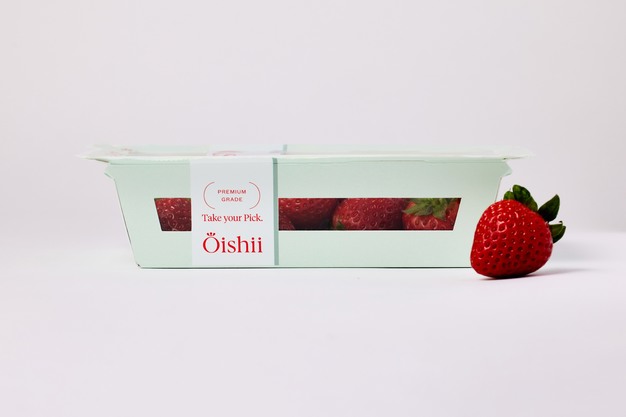 The new packaging replaces the traditional plastic clamshell with a cardboard tray topped by a lightweight seal. According to Oishii, the design reduces plastic use by more than 80 percent compared with most strawberry packaging currently used in the market.