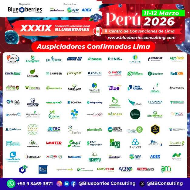 © Blueberries ConsultingPhoto Blueberries Consulting: Sponsors of the XXXIX International Blueberries Seminar Lima - Peru 2026.