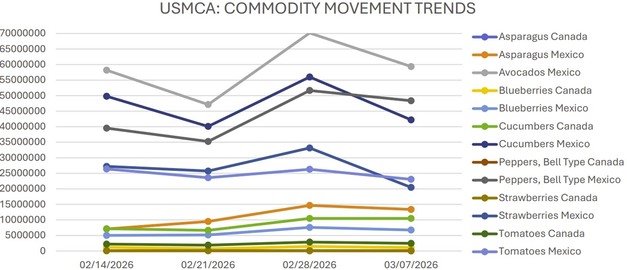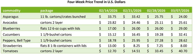 The U.S. produce market shows mixed price developments across several categories this week. While cucumbers and green bell peppers recorded higher prices due to limited supply and active trading, strawberries and tomatoes saw notable price declines. Blueberries and avocados moved in different directions depending on origin.