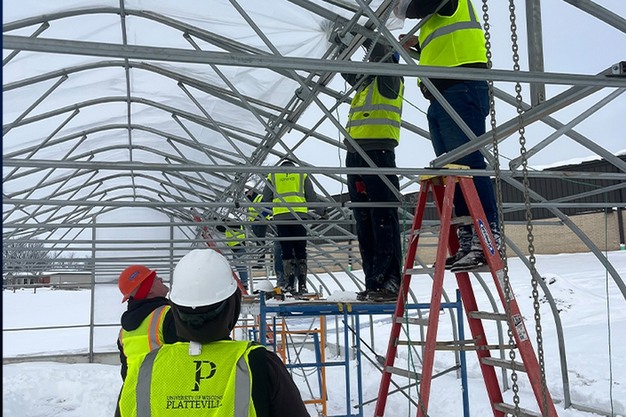 Students in the AGET 4890: Structures and Environmental Control course at the University of Wisconsin-Platteville successfully completed the construction and assembly of a greenhouse for Southwestern Wisconsin High School.