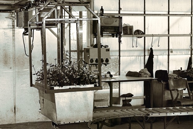 In 2009, propagation company LKP Plants requested a logistics system capable of moving individual rolling containers. At the time, only groups of tables could be moved, which created microclimatic problems in cultivation. A brainstorming session led to the concept of the 1D shuttle, a system that could automatically move tables within the row where they were needed.
