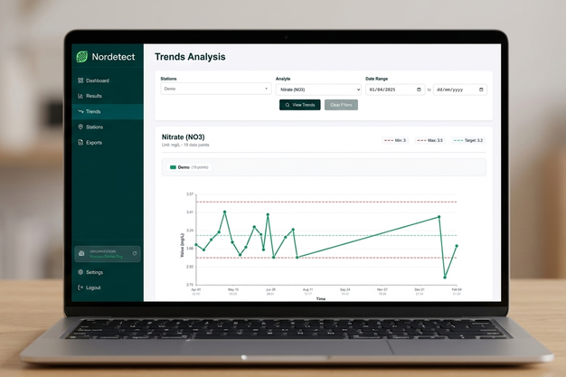 The platform centralizes historical laboratory reports alongside third-party pH and EC measurements in a cloud-based interface designed to support long-term nutrient monitoring workflows. The software operates independently of Nordetect's hardware and is available to any grower via a tiered pricing structure, including a free option, on the company's website. "For smaller growers who do only a limited number of tests, it's free forever."