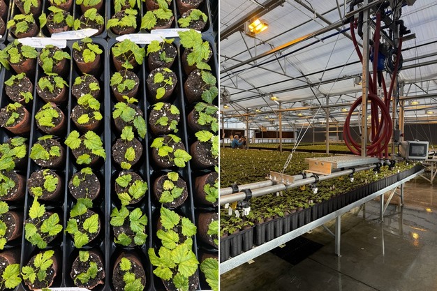 Within this system, greenhouse propagation plays a decisive role. YCR produces virus-free transplants for growers, a factor Cameron identifies as essential to field performance: "those plants that come through our system are typically about 30 to 35% more efficient and produce that much more on a per-acre basis." The operation delivers up to three million plants annually, with approximately 1.5 million produced in-house.