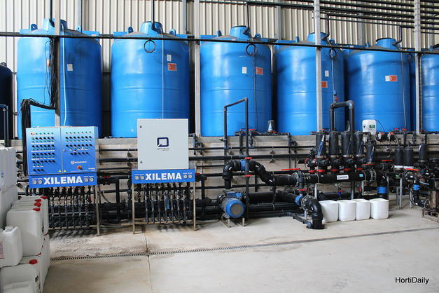 The irrigation and water circulation setup also includes mixing tanks for water and fertilisers, sand filters for purification, and fully automated, efficient plant protection equipment.