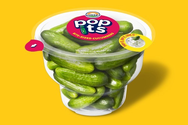 Recently launched in Canada, the USA, and the UK, and submitted for this year's Best Snackable Produce Showcase, SUNSET Pop Its cucumbers are snack-sized cucumbers. Measuring up to two inches, these are the smallest SUNSET cucumbers yet.