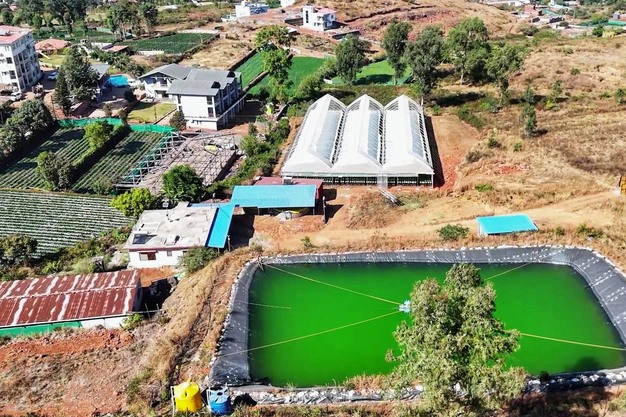 The operation currently includes a 1,500 m² protected cultivation facility, growing strawberries in substrate growbags inside semi-open polyhouse structures, managed through a fully automated fertigation system. "Water efficiency is a core principle of the operation: we harvest rainwater into an on-site storage pond of over one million liters, and our soilless system requires no more than 75 ml of water per plant per day — a fraction of what conventional cultivation demands", Ketan shows.