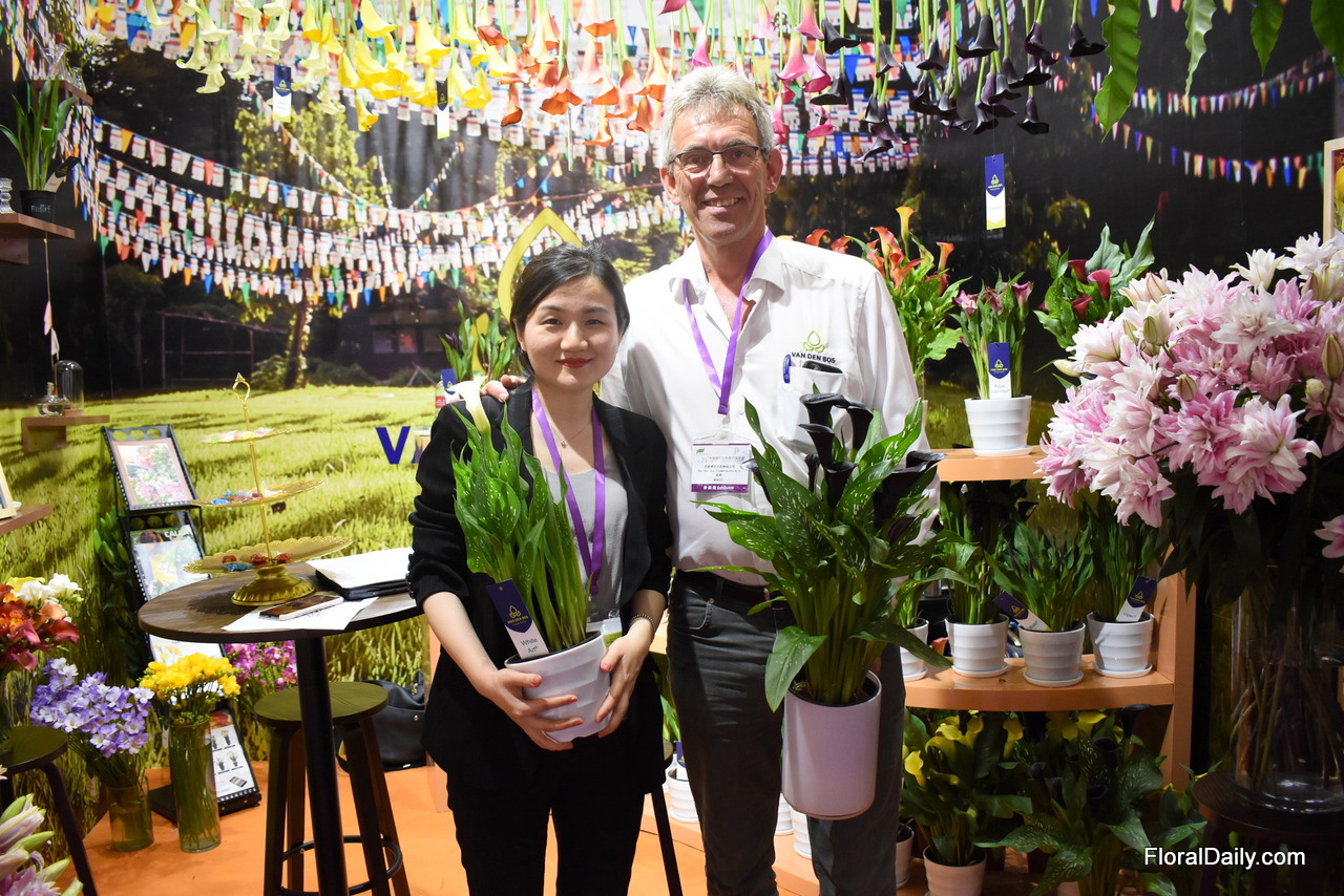 Claudia and Peter van Os of Van der Bos Flowerbulbs. They are on the Chinese market for over 10 years now and they have become quite well-known for their lilies. Now, they want to develop a demand for their calla's and freesia's as they see a lot of potential for these products on the Chinese market.