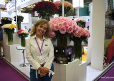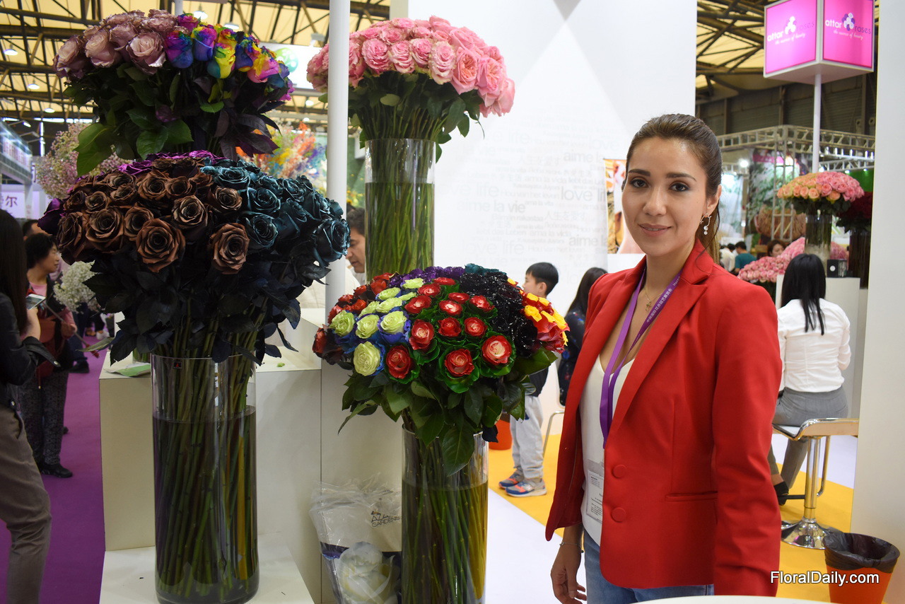 Tasya Kravchenko of Florisol. At the Pro Ecuador booth, they present their tinted roses and gypsophilas. They are eager to export to China and so far, the tinted gypsophila attracted the most attention.