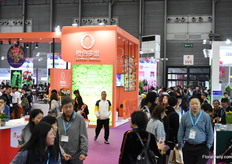 Busy at the booths of the South American growers.
