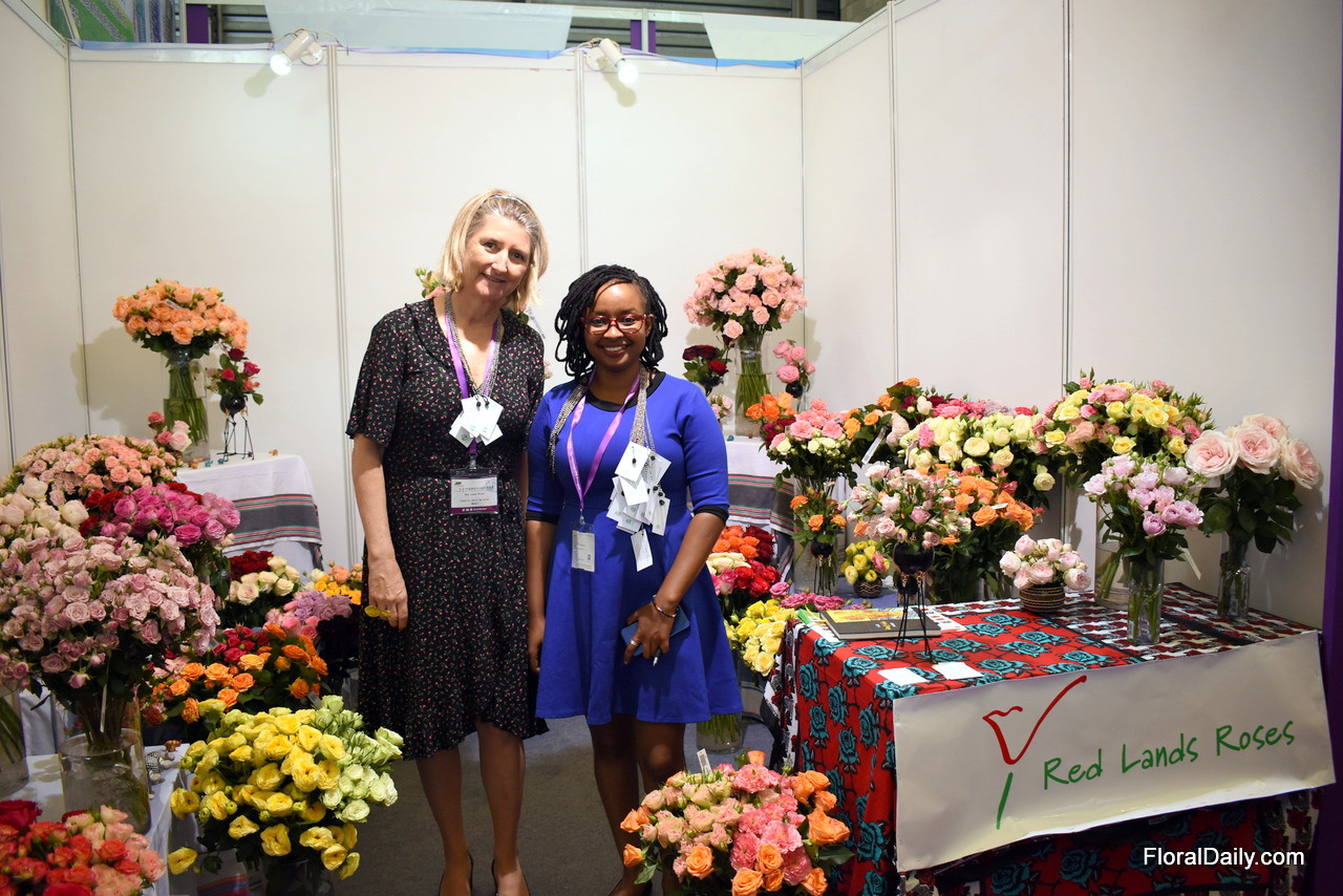 Isabelle Henin Spindler and Rita Manjik of Red Lands Roses. They are exporting to China for about 5 years now and it is the fourth time that they are exhibiting at the Hortiflor expo in China. They feel that the domestic production is increasing and improving, but not much spray are being grown. Therefore, spray  as well as the odd colors and garden style roses are the main types of this Kenyan rose grower that go to China. Isabelle see a lot of potential for the future, especially if there will be direct flights from Kenya to China.