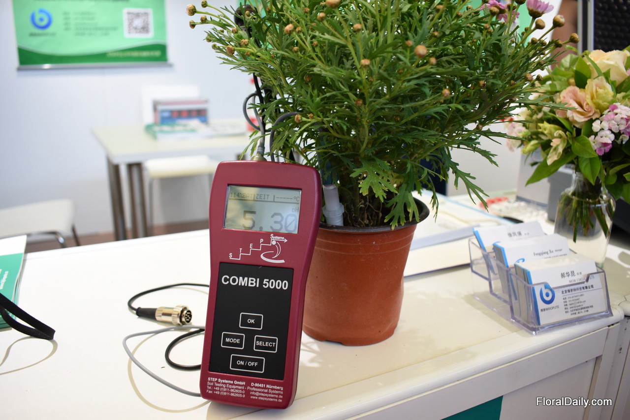 Also Step Systems is exhibiting at the German pavilion. For the first time in China, they present their Combi 5000. With this measurement instrument, they can measure PH, EC, salinity, temperature and moisture."