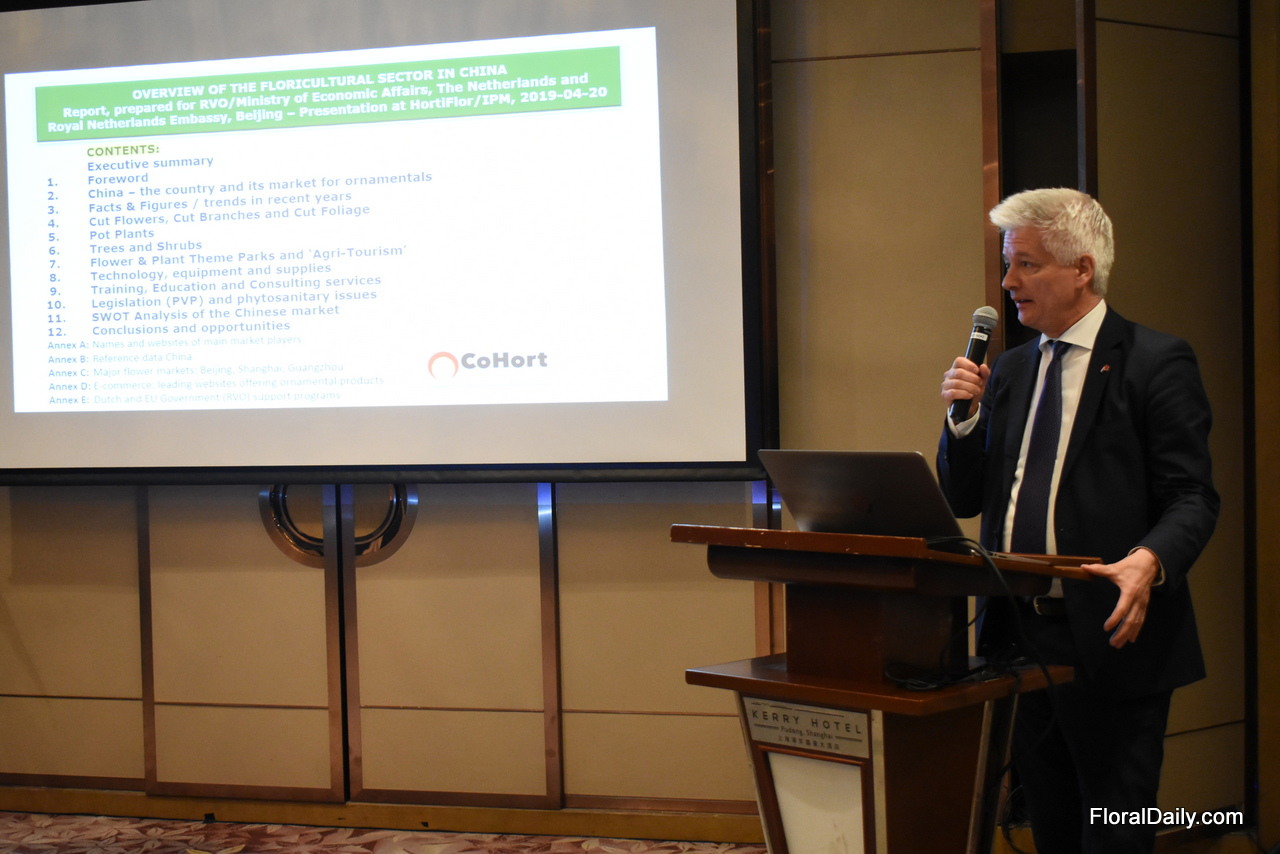 Oscar Niezen of Cohort Consultancy presenting the Floriculture report "Floricultural sector in China", prepared for RVO/Ministry of Economic Affairs, The Netherlands and Royal Netherlands Embassy. The report is available on request via [email protected].