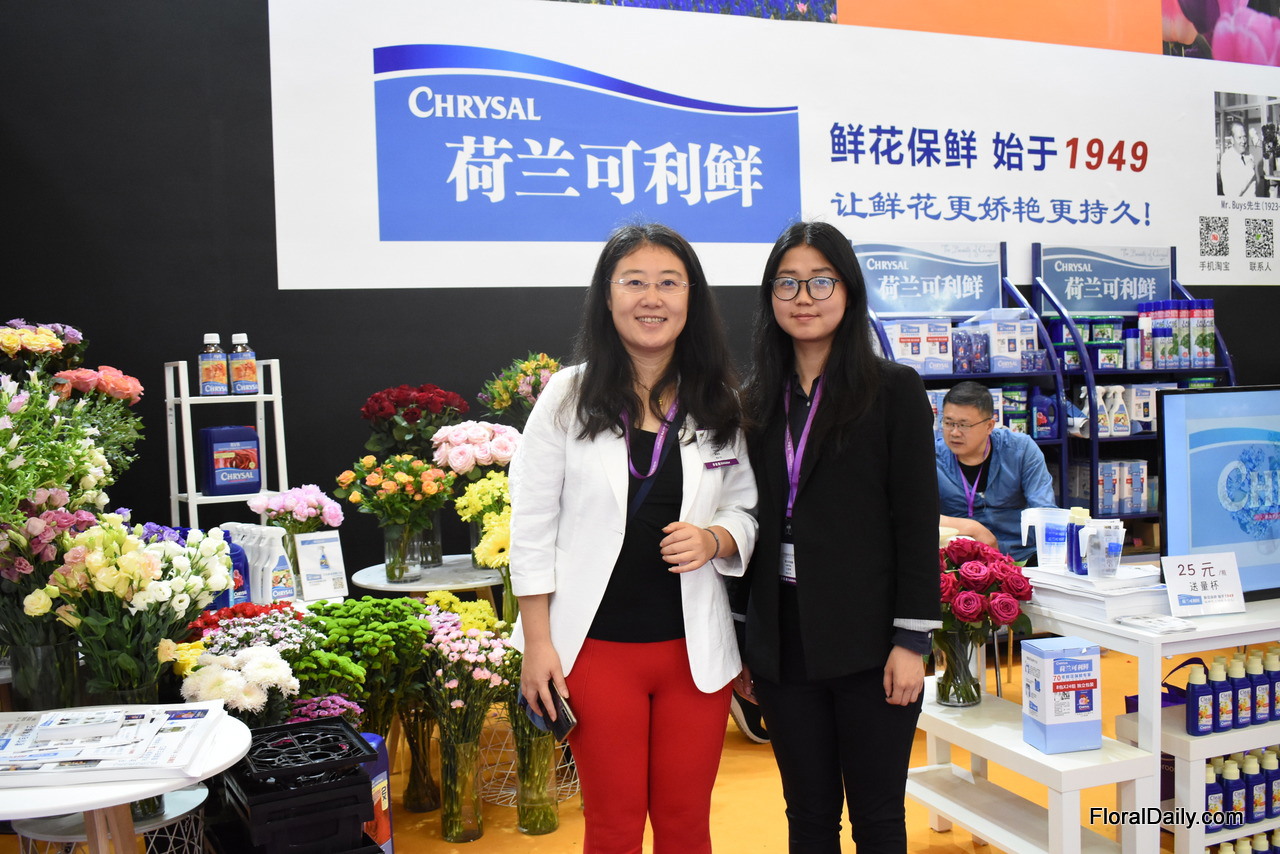 Alyssa Guo and Grace Wang of Chrysal. Next to the retail and growers, they are now focussing on the end consumer too. "We want to learn them how to handle flowers so that they can enjoy them for a longer period."