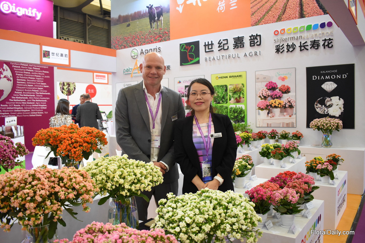 Stefan Slijkerman of Slijkerman Kalanchoe and Sandy Yun of Beautiful Agri, the Chinese agent of Slijkerman Agaris, Varinova and Henk Braam.