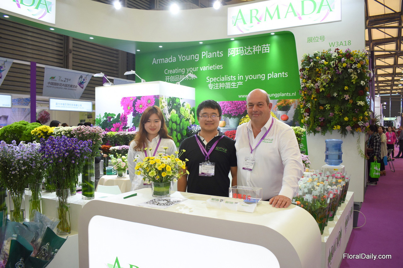 Ida Zhang, Savio Ma and Gerard Lentjes of Armada. Last year, they established Armada China in Shanghai and they are now for the first time exhibiting with their company at the Hortiflorexpo.