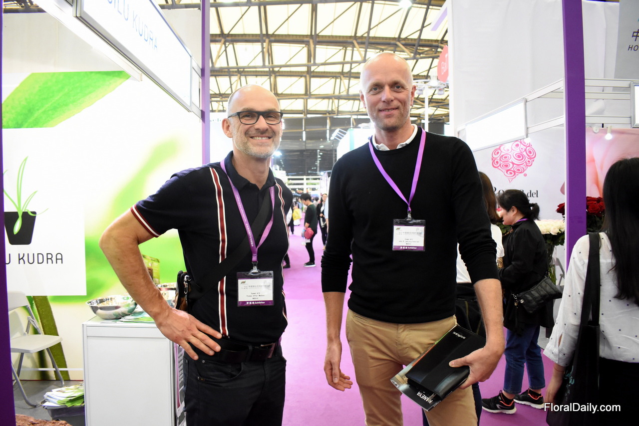 Tom Li and Bob van Vianen of Holex. They import flowers, mainly from the Netherlands and they recently (January 2019) established a representative office in Shanghai.