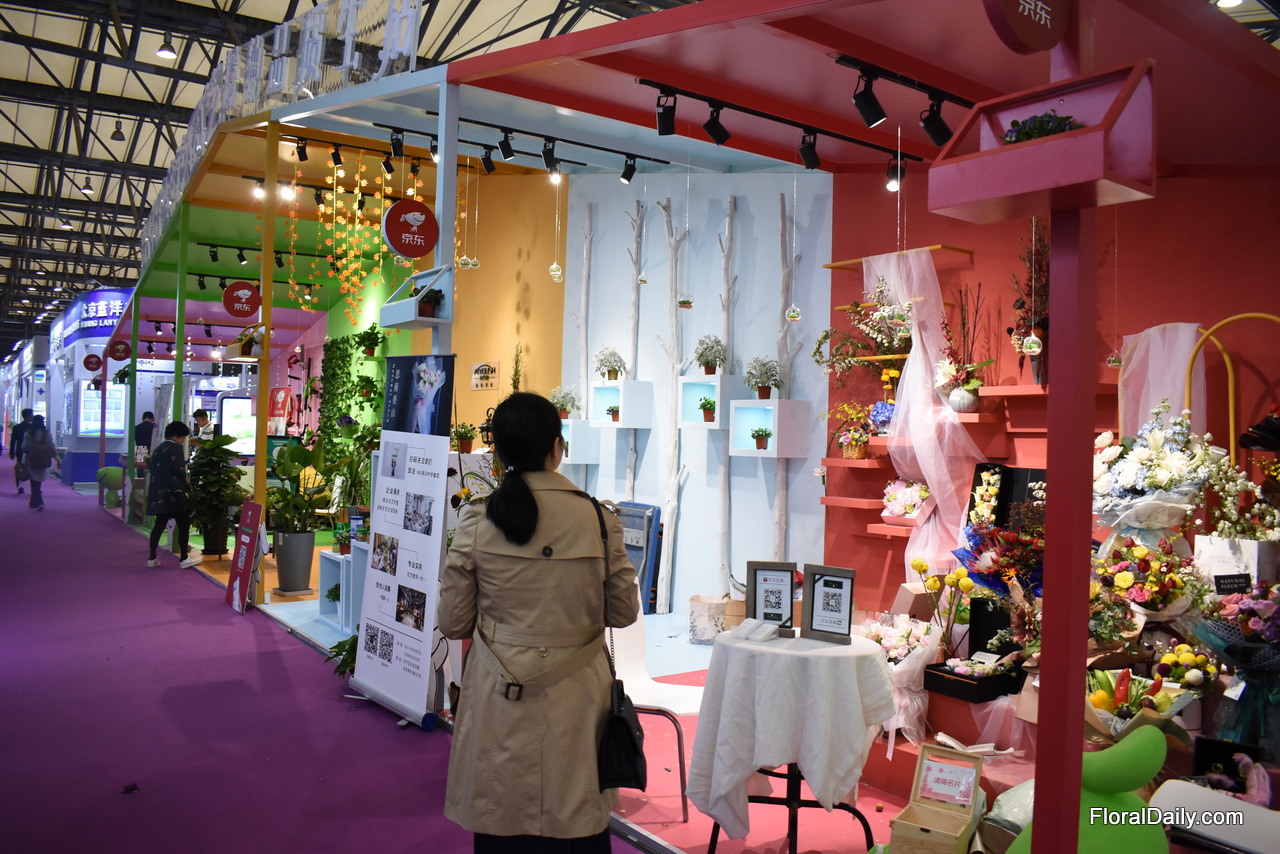 The booth of JD.com, one of China’s biggest online retailers. They will soon start to sell flowers online, which is quite a big thing.